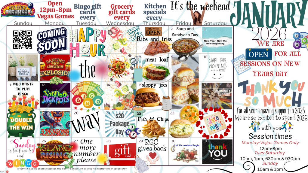 Stay up to date with all of the fun events occurring this month at Riverview Gaming Centre! With lots of chances to win big, fun and exciting special events and giveaways, and delicious meal deals – you can’t go wrong with choosing Riverview Gaming Centre!