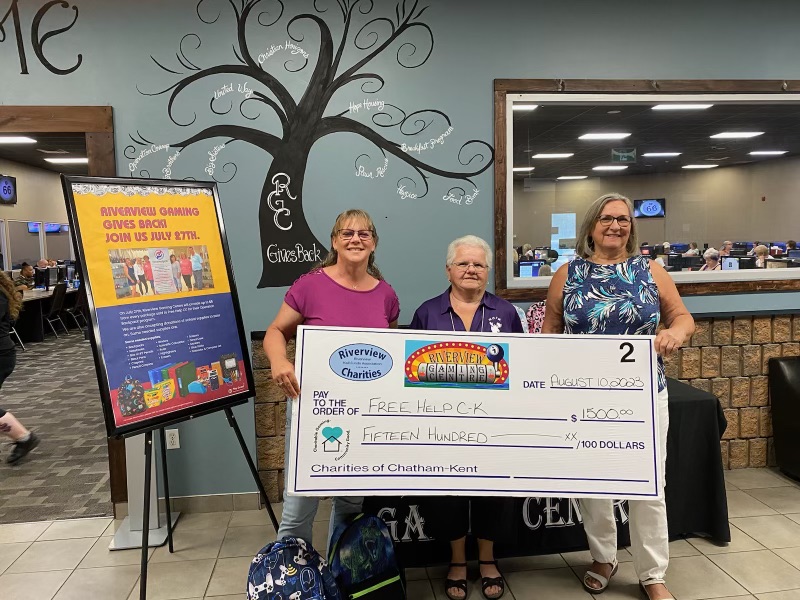 Here at Riverview Gaming Centre, we strive to help our community as best we can. Each month, a specific charity in need is chosen. A percentage of all bingo packages sold on a designated day go directly to this charity (up to $1500). Recently we have provided support to Free Help CK’s Operation Backpack Program to help ensure our Chatham-Kent youth have all of their necessary school supplies for the upcoming year.